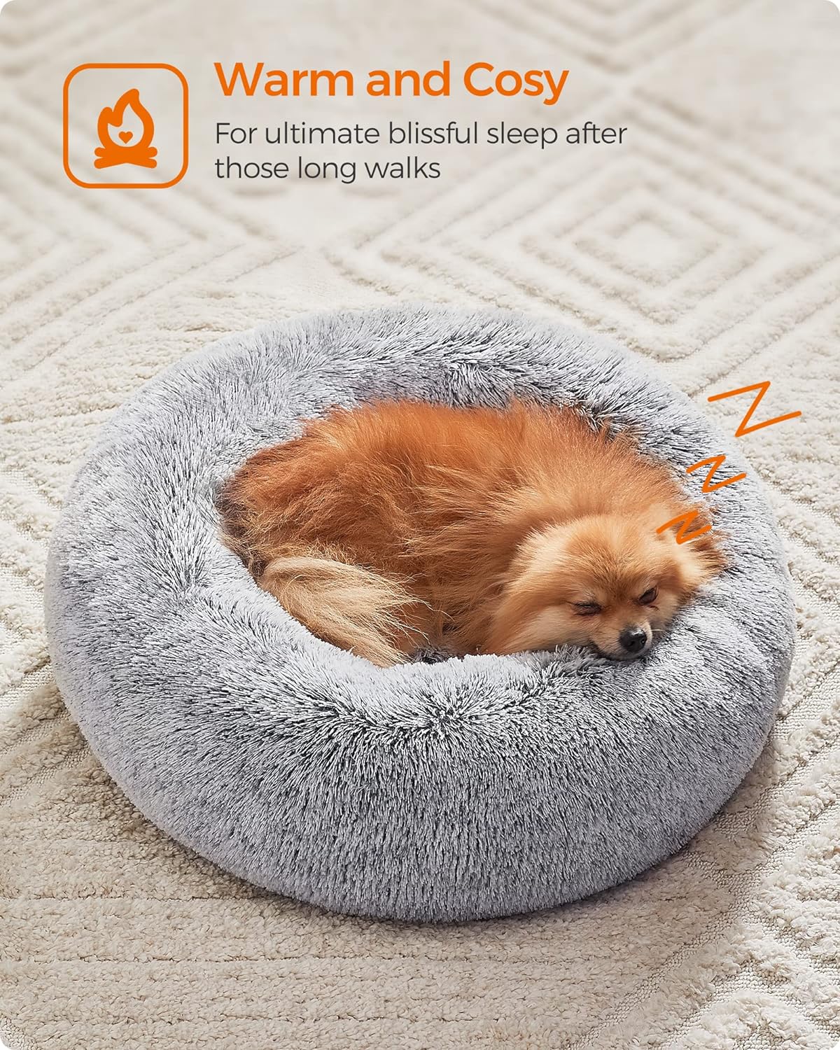 - Washable Cover, Easy Cleaning: With a zipper on the bottom of the donut dog bed, you can remove the central cushion to clean the rest and get rid of dirt and smells—easier work for you, and a more hygienic life for your pet