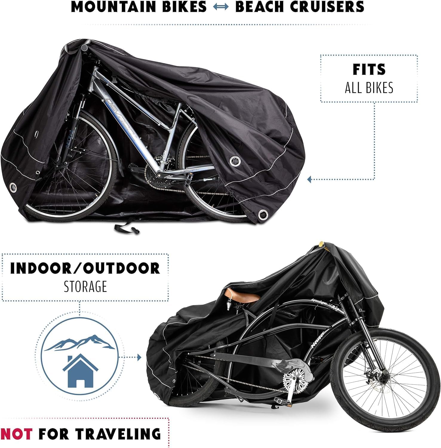 - QUALITY YOU CAN TRUST! – This heavy duty waterproof material will offer constant protection for your bikes indoor or outdoor: yard – patio – garage – apartment – house – travel transport.